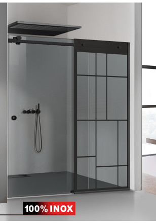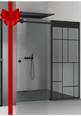 Perete de dus glisant cu intrare laterala, din sticla bronz, 6 mm, securizata.GLISSANDO BLACK sticla gri model: URBAN executat deosebit de pretentios din materiale de cea mai buna calitate si un design pentru bai cu personalitate.