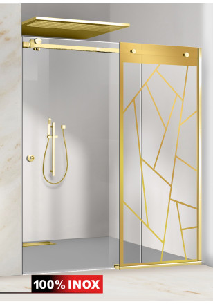 Peretele de dus cu usa culisanta Glissando Gold culoare aurie se bucura de un design rafinat, contemporan si minimalist. Decorat prin sablare tratata cu cea mai moderna tehnologie nano fabricat in Germania.