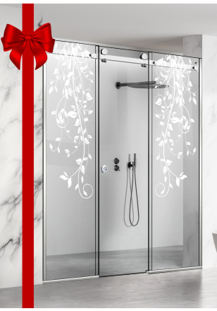 Perete dus cu usa glisanta, (059) 3 elemente GLISSANDO LINE inox, model Dance alb, sticla clara securizata