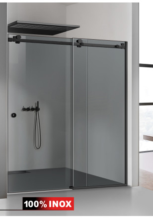 Perete de dus glisant cu intrare laterala, din sticla gri, 6 mm, securizata. Model: GLISSANDO BLACK gri - executat deosebit de pretentios din materiale de cea mai buna calitate si un design pentru bai cu personalitate.