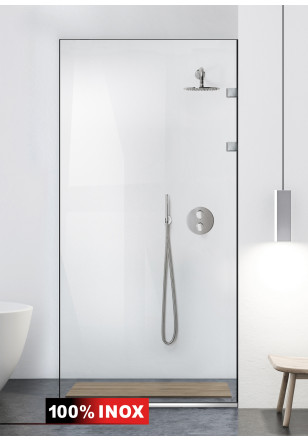 Paravan Cabina dus Walk-In, Aqua Elegance INOX sticla clara, securizata, geam dus la dimensiuni standard: 70/80/90 cm x 190 cm, cu intrare laterala, executie pretentioasa cu materiale de calitate top si de durata. Pret Peretele de dus iefin sicu toata feroneria din INOX SS304 luciu oglinda cu un aspect si o calitate deosebita! Usor de montat. Timp de montaj ~ 1 ora. Paravanul de dus Aqua Elegance INOX se bucura de un design rafinat, contemporan destinat in special interioarelor minimaliste deoarece nu necesita bara stabilizatoare.