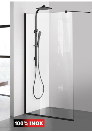 Paravan Cabina dus Walk-In, Aqua Roy ® Black sticla clara, securizata, de 8 mm grosime, geam dus la dimensiuni standard: 50/60/70/80/90/100/110/120/130/140 cm x 195 cm, cu intrare laterala, executie pretentioasa cu materiale de calitate top si de durata. Peretele de dus are toata feroneria din negru mat cu un aspect si o calitate deosebita! Usor de montat. Timp de montaj ~ 1 ora.