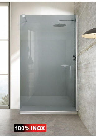 Paravan Cabina dus Walk-In, Aqua Roy ® INOX sticla gri, securizata, de 8 mm grosime, geam dus la dimensiuni standard: 70/80/90/100/110/120 cm x 195 cm, cu intrare laterala, executie pretentioasa cu materiale de calitate top si de durata. Peretele de dus are toata feroneria din INOX SS304 luciu oglinda cu un aspect si o calitate deosebita! Usor de montat. Timp de montaj ~ 1 ora.