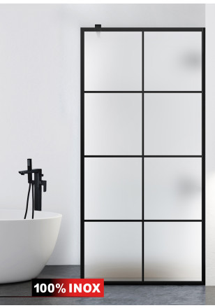 Paravan dus WALK-IN model: AQUA ROY® BLACK MODE sticla mata, securizata, sablata de 8 mm grosime, deosebit de rezistenta, de diferite dimensiuni: 70/80/90/100/110/120 x 195 cm. Perete dus sticla cu intrare laterala, executie pretentioasa cu materiale de cea mai buna calitate.
