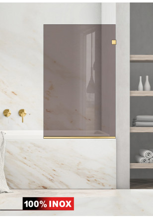 Paravan cada din sticla bronz/gri model: RAVANA ELEGANCE GOLD cu clema decorativa! Pretul afisat se refera la sticla clara securizata de 6 mm grosime, dimensiunea de 70 x 140 cm si include 1 clema decorativa din inox pentru fixare, profil inox in partea inferioara + garnitura siliconica, banda dublu adeziva pentru prinderea de cada.
