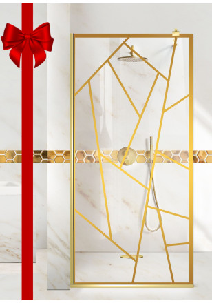 Paravan Cabina dus Walk-In, Aqua Roy ® Gold model ATLAS auriu, sticla clara, securizata, de 8 mm grosime, geam dus la dimensiuni standard: 70/80/90/100/110/120 cm x 195 cm, cu intrare laterala, executie pretentioasa cu materiale de calitate top si de durata. Peretele de dus are toata feroneria de culoare aurie luciu oglinda cu un aspect si o calitate deosebita!