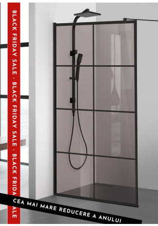 Paravan dus WALK-IN model: AQUA ROY® BLACK MODE sticla bronz, securizata, sablata de 8 mm grosime, deosebit de rezistenta, de diferite dimensiuni: 70/80/90/100/110/120 x 195 cm. Perete dus sticla cu intrare laterala, executie pretentioasa cu materiale de cea mai buna calitate.