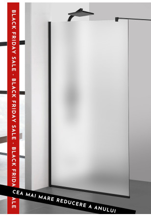 Paravan dus WALK-IN model: AQUA ROY® BLACK sticla mata securizata, sablata de 8 mm grosime, deosebit de rezistenta, de diferite dimensiuni: 70/80/90/100/110/120 x 195 cm. Perete dus sticla cu intrare laterala, executie pretentioasa cu materiale de cea mai buna calitate.