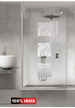 Paravan de dus WALK-IN cu intrare laterala, decorata. Produs personalizat (model, culoare model la alegere) se executa la comanda – livrare in max.7 zile lucratoare! Model decorare prezentat: AQUA ROY ROSE, din sticla clara, SECURIZATA de 8 mm grosime- executie pretentioasa cu materiale de calitate top si de durata precum si un design minimalist si modern. Culoarea decorului este obtinuta cu cea mai avansata tehnologie nano – fabricat exclusiv in Germania.