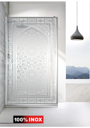 Paravan Cabina dus Walk-In, Aqua Roy ® INOX model CARAT sablat incolor/alb, sticla clara, securizata,de 8 mm grosime, geam dus la dimensiuni standard: 50/60/70/80/90/100/110/120/130/140 cm x 195 cm, cu intrare laterala, executie pretentioasa cu materiale de calitate top si de durata. Peretele de dus are toata feroneria din INOX SS304 luciu oglinda cu un aspect si o calitate deosebita!