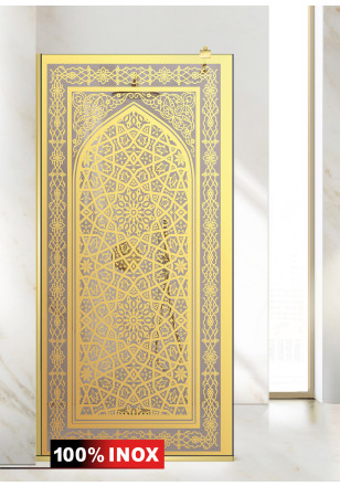 Paravan Cabina dus Walk-In, Aqua Roy ®Gold model Carat auriu, sticla bronz, securizata, de 8 mm grosime, geam dus la dimensiuni standard: 70/80/90/100/110/120 cm x 195 cm, cu intrare laterala, executie pretentioasa cu materiale de calitate top si de durata. Peretele de dus are toata feroneria de culoare aurie luciu oglinda cu un aspect si o calitate deosebita!
