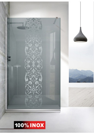 Paravan Cabina dus Walk-In, Aqua Roy ® INOX model Doha Medalion alb/incolor, sticla gri, securizata,de 8 mm grosime, geam dus la dimensiuni standard: 70/80/90/100/110/120 cm x 195 cm, cu intrare laterala, executie pretentioasa cu materiale de calitate top si de durata. Peretele de dus are toata feroneria din INOX SS304 luciu oglinda cu un aspect si o calitate deosebita!