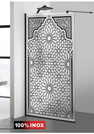 Paravan Cabina dus Walk-In, Aqua Roy ® Black model Amira negru, sticla mata, securizata, de 8 mm grosime, geam dus la dimensiuni standard: 70/80/90/100/110/120 cm x 195 cm, cu intrare laterala, executie pretentioasa cu materiale de calitate top si de durata. Peretele de dus are toata feroneria negru mat cu un aspect si o calitate deosebita!