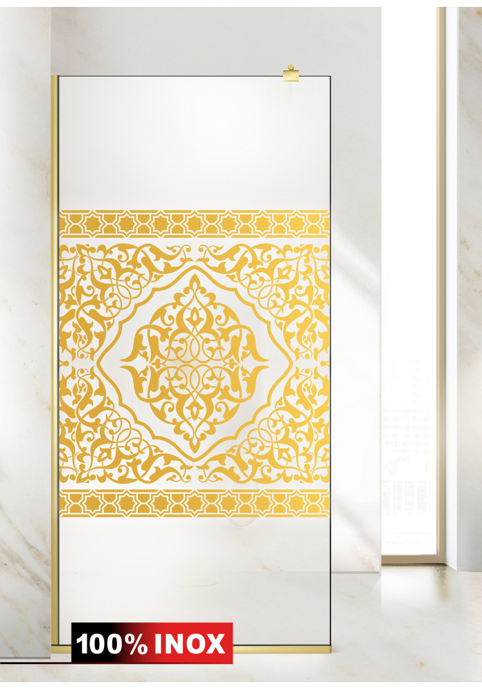 Paravan de dus WALK-IN, cu intrare laterala, sticla mata/satinata securizata, rezistenta la socuri, grosime 8 mm, Model: AQUA ROY GOLD DOHA ORIZONTAL din materiale de calitate top.