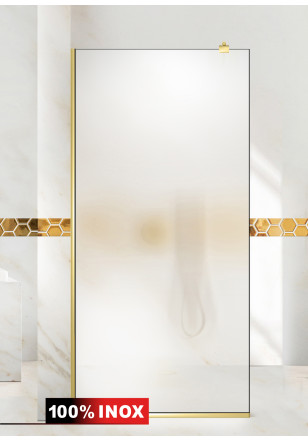 Paravan Cabina dus Walk-In, Aqua Roy ® Gold sticla clara, securizata,de 8 mm grosime, geam dus la dimensiuni standard: 70/80/90/100/110/120 cm x 195 cm, cu intrare laterala, executie pretentioasa cu materiale de calitate top si de durata. Peretele de dus are toata feroneria deculoare aurie luciu oglinda cu un aspect si o calitate deosebita!