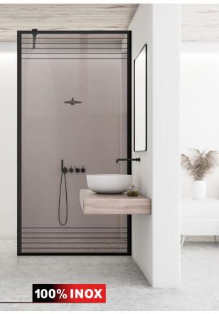 Paravan dus WALK-IN model: AQUA ROY® BLACK FENCE sticla bronz, securizata, sablata de 8 mm grosime, deosebit de rezistenta, de diferite dimensiuni: 70/80/90/100/110/120 x 195 cm. Perete dus sticla cu intrare laterala, executie pretentioasa cu materiale de cea mai buna calitate.