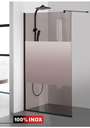 Paravan de dus WALK-IN cu intrare laterala, decorata. Produs personalizat (model, culoare model la alegere) se executa la comanda – livrare in max.7 zile lucratoare! Model decorare prezentat: AQUA ROY LINE, din sticla bronz SECURIZATA de 8 mm grosime- executie pretentioasa cu materiale de calitate top si de durata precum si un design minimalist si modern. Culoarea decorului este obtinuta cu cea mai avansata tehnologie nano – fabricat exclusiv in Germania.