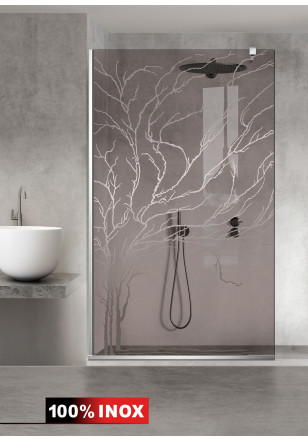 Paravan de dus WALK-IN cu intrare laterala, decorata. Produs personalizat (model, culoare model la alegere) se executa la comanda – livrare in max.7 zile lucratoare! Model decorare prezentat: AQUA ROY TREE, din sticla bronz SECURIZATA de 8 mm grosime- executie pretentioasa cu materiale de calitate top si de durata precum si un design minimalist si modern. Culoarea decorului este obtinuta cu cea mai avansata tehnologie nano – fabricat exclusiv in Germania.