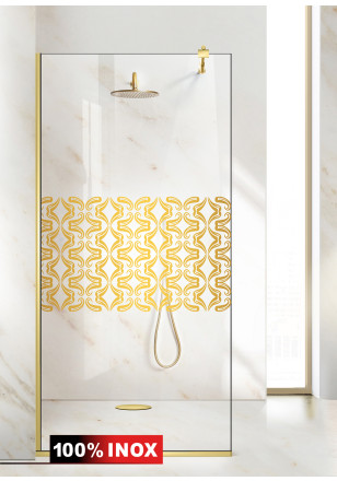 Paravanele de dus au profil INOX luciu oglinda aurie nu numai pe latura verticala ci si la baza sticlei asigurand o stabilitate si o aderenta mai mare la pardoseala! Mai mult: ascunde micile denivelari sau liniile strambe ale peretelui/pardoselii (pana la 1 cm). Alegeti solutii de lunga durata si fara compromisuri!