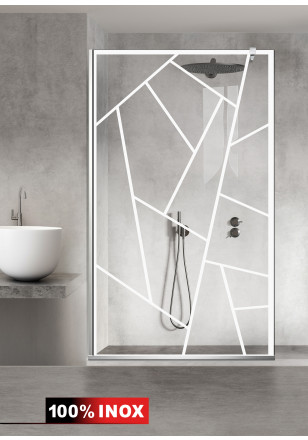 Paravan de dus WALK-IN cu intrare laterala, decorata. Livrare in 7 zile lucratoare! Model decorare prezentat: AQUA ROY ATLAS, din sticla clara SECURIZATA, cu tratament anticalcar 50/60/70/80/90/100/110/120/130/140 x 195 cm, de 8 mm grosime – executie pretentioasa cu materiale de calitate top si de durata precum si un design minimalist si modern. Culoarea decorului este obtinuta cu cea mai avansata tehnologie nano – fabricat exclusiv in Germania.