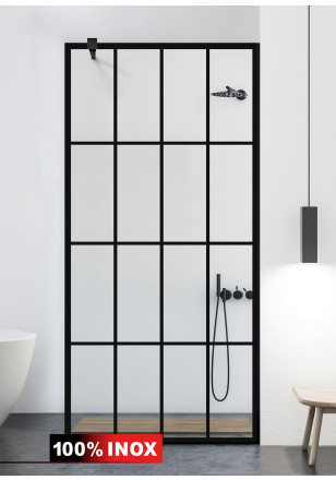 Paravan dus WALK-IN model: AQUA ROY® BLACK RANK sticla clara, securizata, sablata de 8 mm grosime, deosebit de rezistenta, de diferite dimensiuni: 50/60/70/80/90/100/110/120/130/140 x 195 cm. Perete dus sticla cu intrare laterala, executie pretentioasa cu materiale de cea mai buna calitate.
