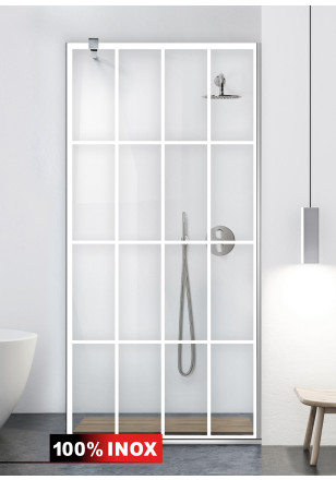 Paravanul de dus WALK-IN se fixeaza cu profil INOX SS304, luciu oglinda de 2 cm atat pe verticala cat si pe orizontala - in care sticla penetreaza pana la capat pentru a asigura o stabilitate si o aderenta mai mare la pardoseala! Mai mult: ascunde micile denivelari sau liniile strambe ale peretelui/pardoselii (pana la 1-1,5 cm). Alegeti calitate, fara compromisuri!