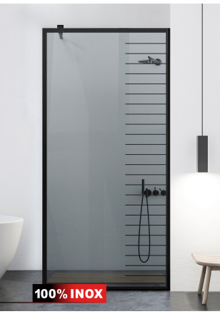 Paravan dus WALK-IN model: AQUA ROY® BLACK SUPREME sticla gri securizata, sablata de 8 mm grosime, deosebit de rezistenta, de diferite dimensiuni: 70/80/90/100/110/120 x 195 cm. Perete dus sticla cu intrare laterala, executie pretentioasa cu materiale de cea mai buna calitate.