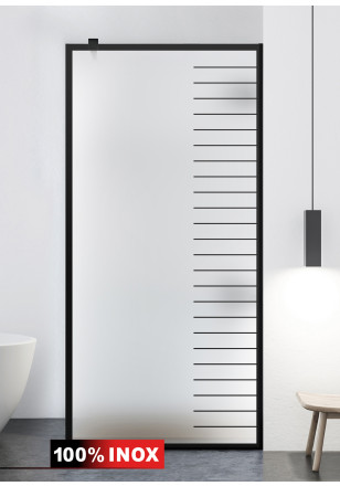 Paravan dus WALK-IN model: AQUA ROY® BLACK SUPREME sticla mata securizata, sablata de 8 mm grosime, deosebit de rezistenta, de diferite dimensiuni: 70/80/90/100/110/120 x 195 cm. Perete dus sticla cu intrare laterala, executie pretentioasa cu materiale de cea mai buna calitate.
