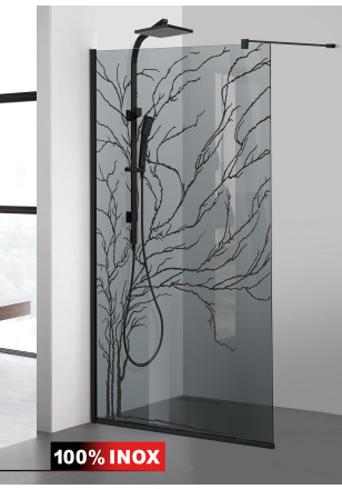 Paravan dus WALK-IN model: AQUA ROY® BLACK TREE sticla gri, securizata, sablata de 8 mm grosime, deosebit de rezistenta, de diferite dimensiuni: 70/80/90/100/110/120 x 195 cm. Perete dus sticla cu intrare laterala, executie pretentioasa cu materiale de cea mai buna calitate.