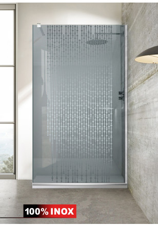 Paravan de dus WALK-IN cu intrare laterala, decorata. Produs personalizat (model, culoare model la alegere) se executa la comanda – livrare in max.7 zile lucratoare! Model decorare prezentat: AQUA ROY RAIN, din sticla gri SECURIZATA de 8 mm grosime- executie pretentioasa cu materiale de calitate top si de durata precum si un design minimalist si modern. Culoarea decorului este obtinuta cu cea mai avansata tehnologie nano – fabricat exclusiv in Germania.