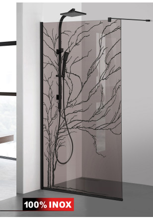 Paravan dus WALK-IN model: AQUA ROY® BLACK TREE sticla bronz, securizata, sablata de 8 mm grosime, deosebit de rezistenta, de diferite dimensiuni: 70/80/90/100/110/120 x 195 cm. Perete dus sticla cu intrare laterala, executie pretentioasa cu materiale de cea mai buna calitate.