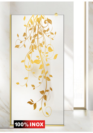 Paravan Cabina dus Walk-In, Aqua Roy ® Gold model DANCE auriu, sticla mata, securizata,de 8 mm grosime, geam dus la dimensiuni standard: 70/80/90/100/110/120 cm x 195 cm, cu intrare laterala, executie pretentioasa cu materiale de calitate top si de durata. Peretele de dus are toata feroneria deculoare aurieluciu oglinda cu un aspect si o calitate deosebita!