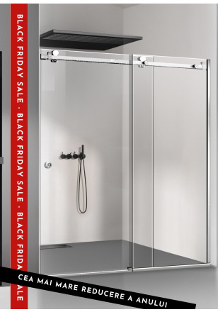 Peretele de dus cu usa culisanta Glissando INOX se bucura de un design rafinat, contemporan si minimalist. Usa de sticla gliseaza foarte usor si este prevazut cu garnituri siliconice pentru blocarea apei.
