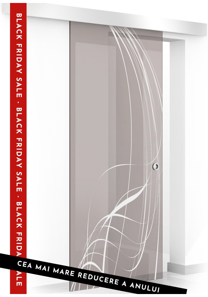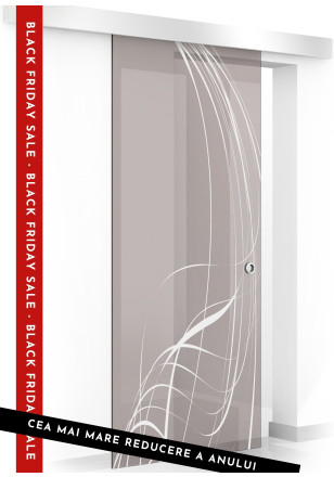 Usa sticla securizata, (0110), tip glisanta, sticla bronz decorata, 8 mm, BOSS LAVA alb