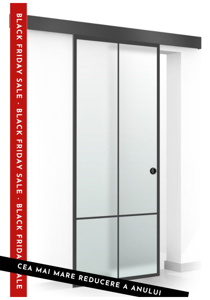 Usa sticla securizata, (0085), tip glisanta, sticla mata decorata, 8 mm, BOSS BLACK CLUB