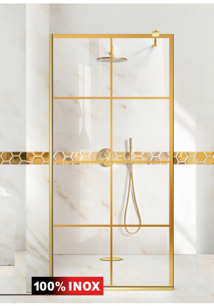 Paravan cabina de dus walk-in, (1207) Aqua Class ® Gold, model MODE auriu, sticla clara securizata