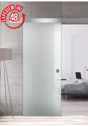 Usa glisanta / Usa culisanta din sticla securizata pentru interioare, denumire model BOSS. Usa sticla pentru interioare culiseaza in totalitate pe partea de sus in sina de glisare, acoperita cu un capac decorativ din aluminiu eloxat. Ca urmare pe pardoseala nu veti avea nimic in afara unui buton de ghidaj de 5 cm, care se monteaza la coltul usii. Simplu de montat! In pachet aveti si instructiuni de montaj. Atentie sticla mata este satinata doar pe o parte, partea aceasta se considera fata sticlei. Directia de culisare a usii se stabileste din partea de fata (parte unde este montata sina de culisare).